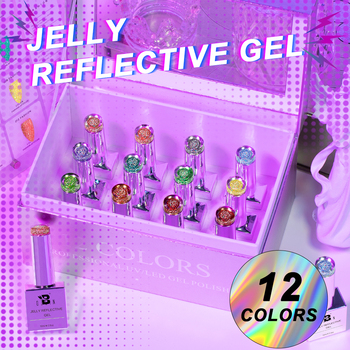 BOZLIN özel etiket jöle flaş Glitter jel lehçe OEM 12 renkler flaş elmas jel toptan kapalı islatın yansıtıcı tırnak jeli lehçe